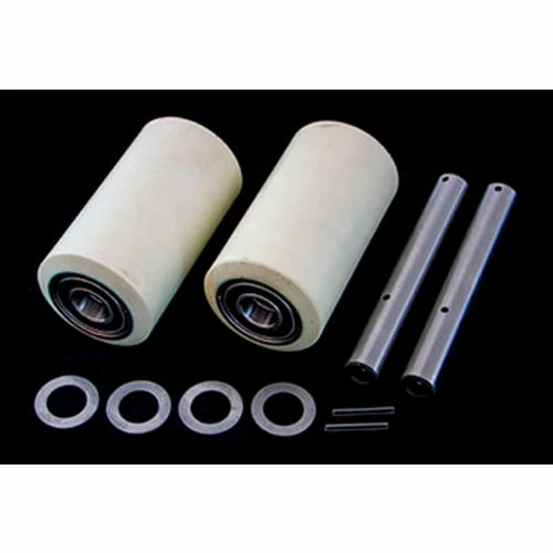 A cost effective, easy to install solution containing all the parts you need to replace the wheels on your pallet jack. Parts are shipped in an easy to store compact box.