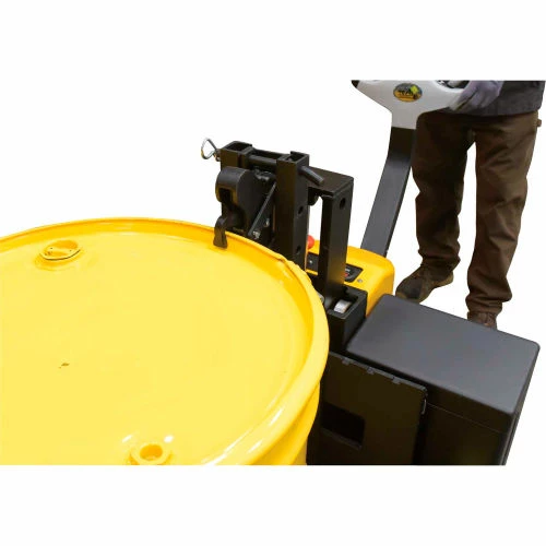 The Single Drum Gripper Hitch RT-EPT-SDG is a great addition to an electric pallet truck. The drum gripper can be in place and ready to use, quickly. The design allows the user to secure drums in place and easily transfer from area to area. This unit minimizes manual labor associated with maneuvering heavy drums. Steel construction with powder coat black finish for baked in added toughness. OSHA Compliant.